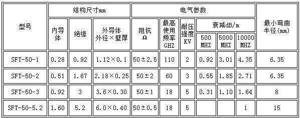 适用于无线电设备中,供固定敷设的高频超高额传输线,使用环境温度-55℃、+125℃。